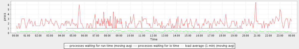 avg(processes waiting for run time) = 0.31 avg(processes waiting for io time) = 0.00 avg(load average (1 min)) = 0.32