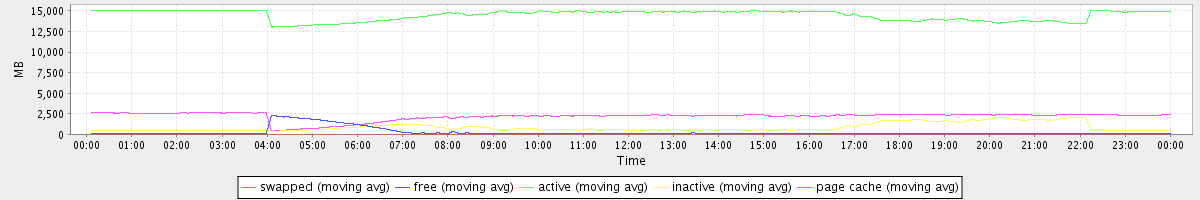 avg(swapped) = 9.50 avg(free) = 244.29 avg(active) = 14471.04 avg(inactive) = 856.64 avg(page cache) = 2179.63