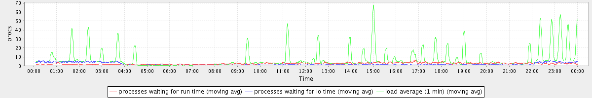 avg(processes waiting for run time) = 1.57 avg(processes waiting for io time) = 1.42 avg(load average (1 min)) = 7.31