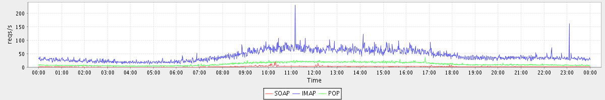Host zm09.stanford.edu: Mailboxd: Request Rate by Client Protocol