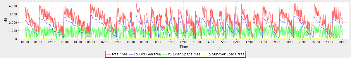 avg(total free) = 2279.11 avg(PS Old Gen free) = 1386.22 avg(PS Eden Space free) = 828.50 avg(PS Survivor Space free) = 64.39