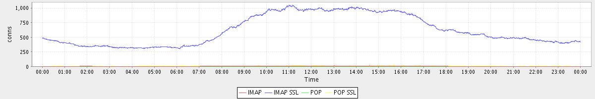 Host zm07.stanford.edu: Mailboxd: Active Connections by Client Protocol