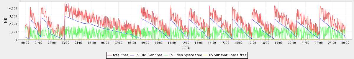 avg(total free) = 2265.79 avg(PS Old Gen free) = 1385.60 avg(PS Eden Space free) = 840.32 avg(PS Survivor Space free) = 39.87
