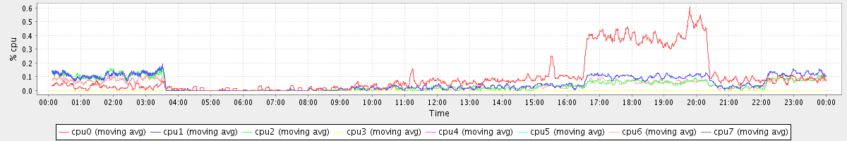 avg(cpu0) = 0.10 avg(cpu1) = 0.05 avg(cpu2) = 0.04 avg(cpu3) = 0.00 avg(cpu4) = 0.00 avg(cpu5) = 0.00 avg(cpu6) = 0.03 avg(cpu7) = 0.00