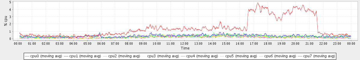 avg(cpu0) = 1.47 avg(cpu1) = 0.34 avg(cpu2) = 0.31 avg(cpu3) = 0.16 avg(cpu4) = 0.14 avg(cpu5) = 0.15 avg(cpu6) = 0.27 avg(cpu7) = 0.16
