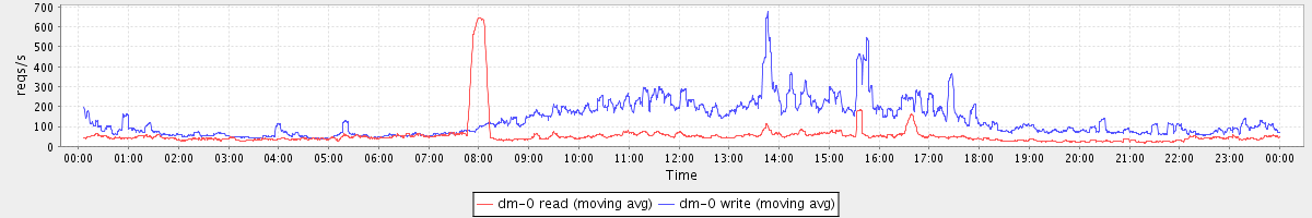 avg(dm-2 read) = 30.37 avg(dm-2 write) = 802.21