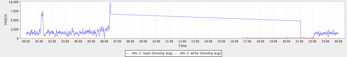 avg(dm-2 read) = 21.49 avg(dm-2 write) = 586.83