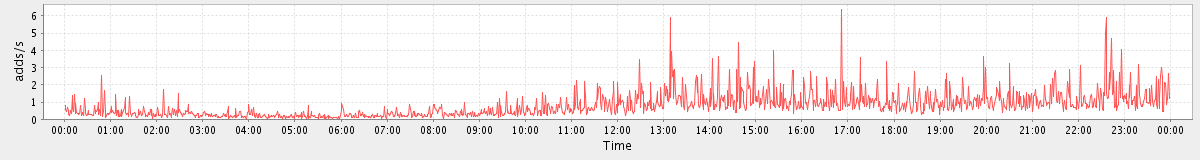 Host zm01.stanford.edu: Mailboxd: Mailbox Add Rate (Delivery Rate)