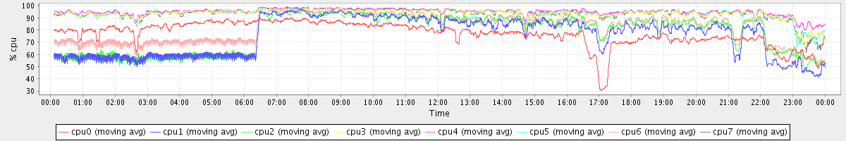 avg(cpu0) = 77.08 avg(cpu1) = 75.51 avg(cpu2) = 77.71 avg(cpu3) = 93.25 avg(cpu4) = 94.83 avg(cpu5) = 93.62 avg(cpu6) = 81.82 avg(cpu7) = 93.28