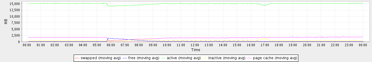 avg(swapped) = 36.49 avg(free) = 183.68 avg(active) = 14906.84 avg(inactive) = 523.14 avg(page cache) = 1532.53