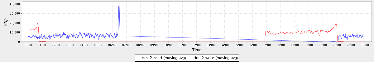 avg(dm-2 read) = 28.54 avg(dm-2 write) = 554.54