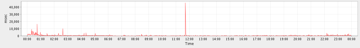 avg(FolderActionRequest.read) = 1595.50 avg(ItemActionRequest.delete) = 925.00 avg(BackupQueryRequest) = 1238.60 avg(GetFreeBusyRequest) = 1427.78 avg(FolderActionRequest.empty) = 15660.51 avg(SyncGalRequest) = 2354.39 avg(BackupRequest) = 535617.50 avg(CancelAppointmentRequest) = 995.88 avg(GetQuotaUsageRequest) = 2544.00 avg(AddMsgRequest) = 1666.81