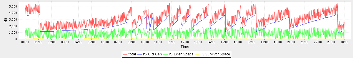 avg(total) = 3161.42 avg(PS Old Gen) = 2278.18 avg(PS Eden Space) = 838.09 avg(PS Survivor Space) = 45.16