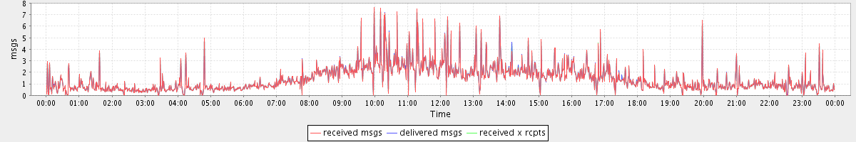 avg(received msgs) = 1.43 avg(delivered msgs) = 1.43 avg(received x rcpts) = 1.43