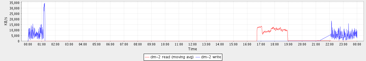 avg(dm-2 read) = 955.06 avg(dm-2 write) = 865.43