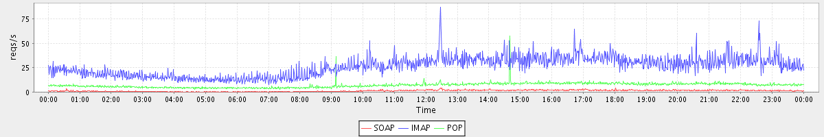 Host zm02.stanford.edu: Mailboxd: Request Rate by Client Protocol