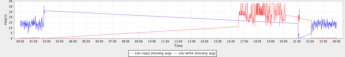 avg(sda read) = 19.35 avg(sda write) = 45.87