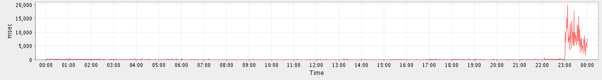 avg(ConvActionRequest.!read) = 2811.64 avg(SendMsgRequest) = 810.10 avg(MaintainTablesRequest) = 261936.00 avg(MsgActionRequest.!read) = 5927.67 avg(FolderActionRequest.empty) = 1542.30 avg(SyncGalRequest) = 4598.92 avg(MsgActionRequest.update) = 1373.79 avg(BackupRequest) = 277854.50 avg(GetQuotaUsageRequest) = 2484.50 avg(AddMsgRequest) = 872.88