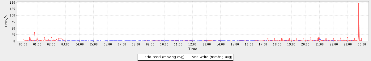 avg(sda read) = 22.46 avg(sda write) = 46.73