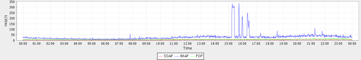 Host zm06.stanford.edu: Mailboxd: Request Rate by Client Protocol