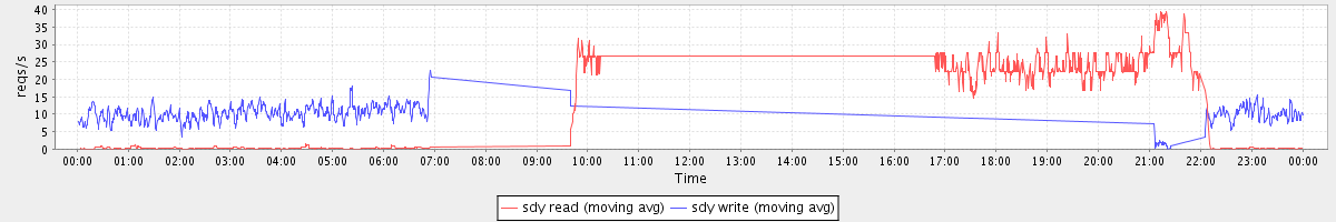 avg(sdb read) = 9.95 avg(sdb write) = 16.34