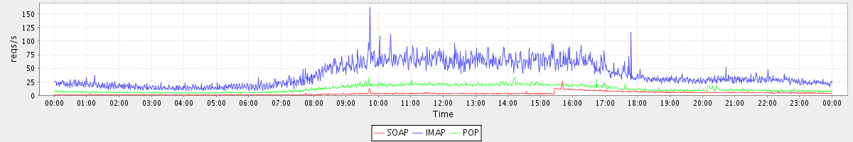 Host zm09.stanford.edu: Mailboxd: Request Rate by Client Protocol