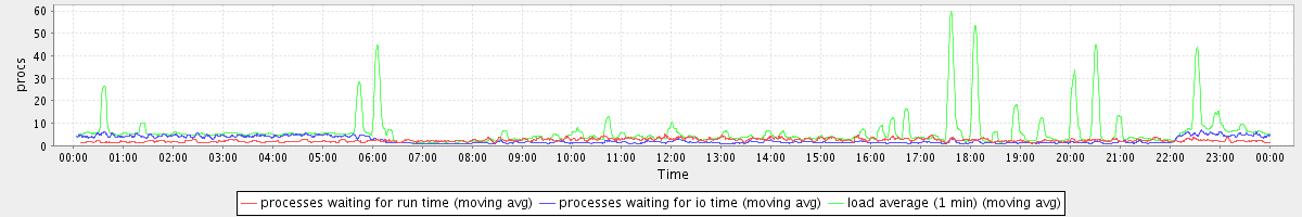 avg(processes waiting for run time) = 1.73 avg(processes waiting for io time) = 1.98 avg(load average (1 min)) = 6.10