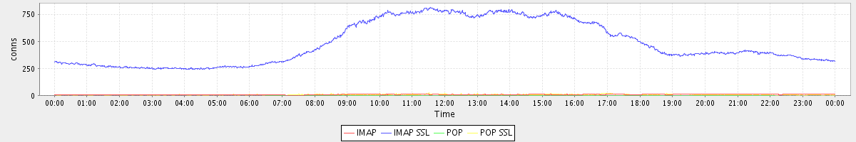 Host zm05.stanford.edu: Mailboxd: Active Connections by Client Protocol
