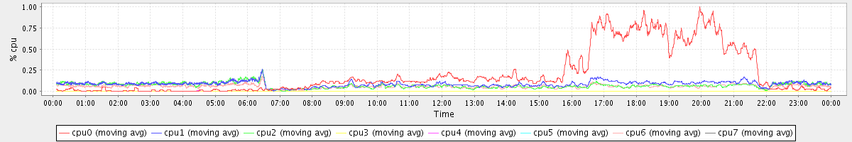 avg(cpu0) = 0.21 avg(cpu1) = 0.08 avg(cpu2) = 0.07 avg(cpu3) = 0.00 avg(cpu4) = 0.00 avg(cpu5) = 0.00 avg(cpu6) = 0.06 avg(cpu7) = 0.00