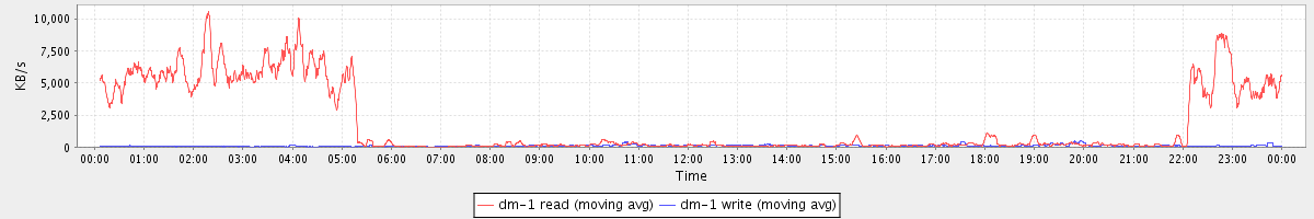 avg(dm-1 read) = 1840.79 avg(dm-1 write) = 98.82