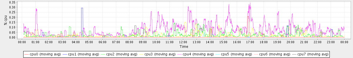 avg(cpu0) = 0.46 avg(cpu1) = 0.32 avg(cpu2) = 0.20 avg(cpu3) = 0.26 avg(cpu4) = 0.19 avg(cpu5) = 0.13 avg(cpu6) = 0.12 avg(cpu7) = 0.11