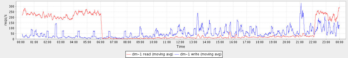 avg(dm-1 read) = 2211.11 avg(dm-1 write) = 217.04