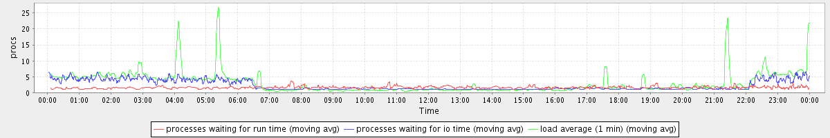 avg(processes waiting for run time) = 0.64 avg(processes waiting for io time) = 1.70 avg(load average (1 min)) = 3.06