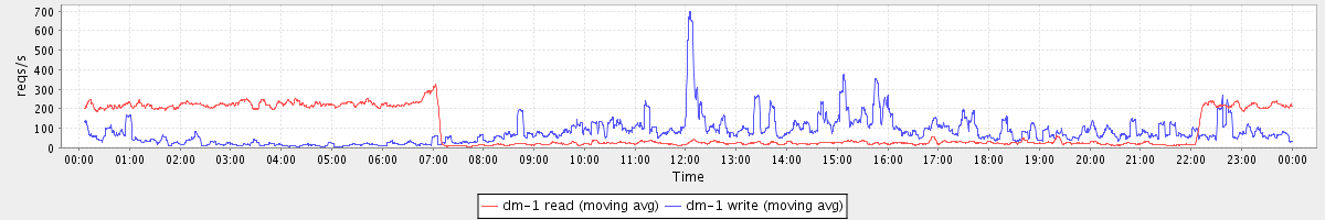 avg(dm-0 read) = 49.26 avg(dm-0 write) = 167.81
