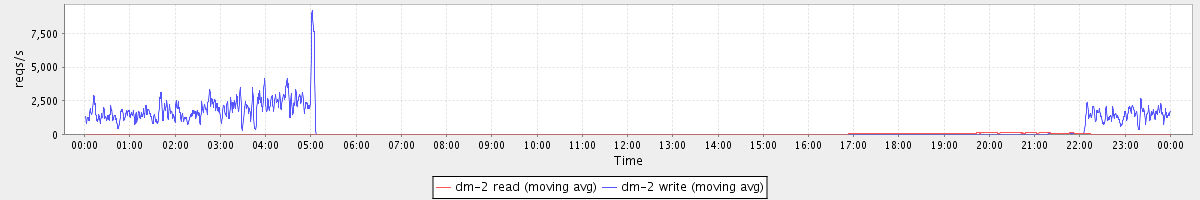 avg(dm-1 read) = 2397.77 avg(dm-1 write) = 380.42