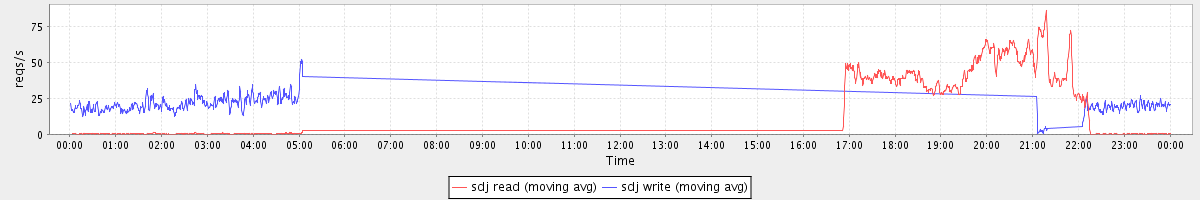 avg(sda1 read) = 36.95 avg(sda1 write) = 44.67