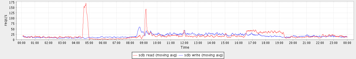 avg(sdb read) = 17.66 avg(sdb write) = 16.92