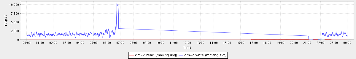 avg(dm-2 read) = 23.00 avg(dm-2 write) = 612.03