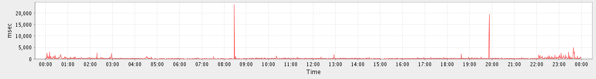 avg(SendMsgRequest) = 422.08 avg(BackupQueryRequest) = 999.25 avg(GetFreeBusyRequest) = 2404.72 avg(SyncGalRequest) = 16889.89 avg(SaveDraftRequest) = 284.51 avg(ModifyContactRequest) = 400.32 avg(ConvActionRequest.delete) = 858.62 avg(FolderActionRequest.empty) = 6989.13 avg(BackupRequest) = 275574.00 avg(GetQuotaUsageRequest) = 2508.00