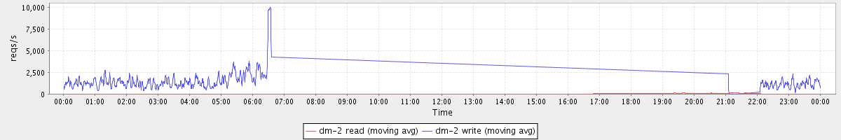 avg(dm-2 read) = 2088.80 avg(dm-2 write) = 2125.75