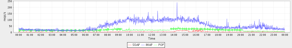 Host zm08.stanford.edu: Mailboxd: Request Rate by Client Protocol