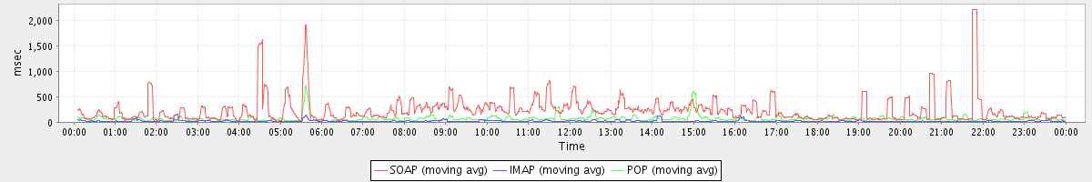 avg(SOAP) = 238.88 avg(IMAP) = 22.84 avg(POP) = 70.21