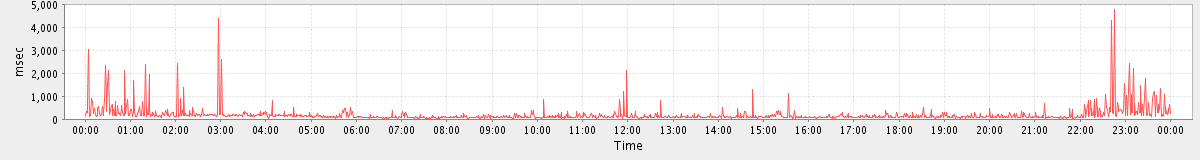 avg(GetMiniCalRequest) = 4469.10 avg(SetTaskRequest) = 1328.15 avg(ConvActionRequest.delete) = 1051.59 avg(GetFreeBusyRequest) = 8532.63 avg(FolderActionRequest.empty) = 17649.97 avg(BrowseRequest) = 1448.00 avg(SyncGalRequest) = 16439.21 avg(BackupRequest) = 382446.00 avg(FolderActionRequest.check) = 1248.21 avg(GetQuotaUsageRequest) = 2574.00