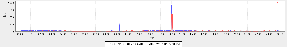 avg(sda2 read) = 0.73 avg(sda2 write) = 37.07