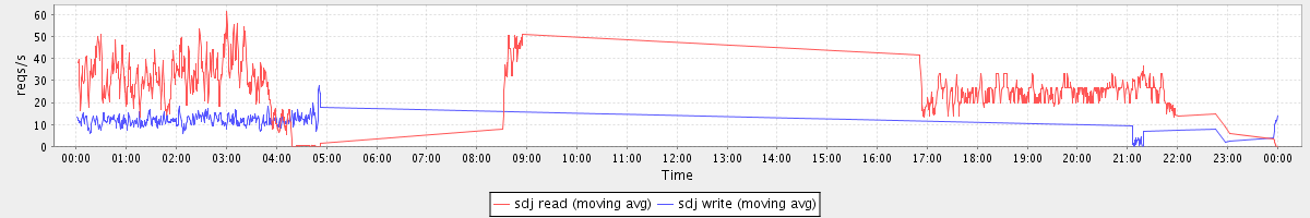 avg(sdb read) = 11.34 avg(sdb write) = 13.79