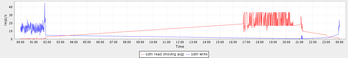 avg(sdb read) = 5.11 avg(sdb write) = 10.78