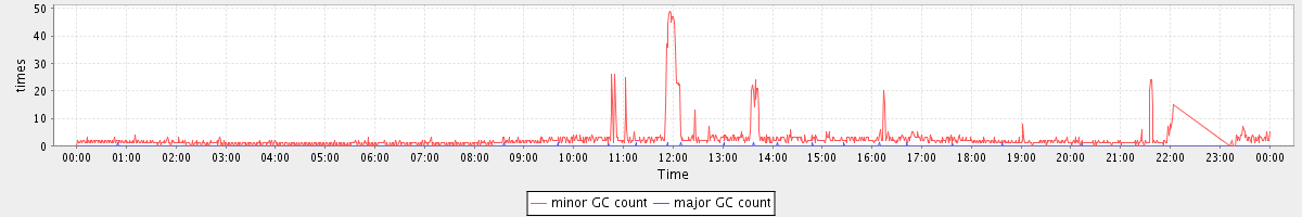avg(minor GC count) = 2.45 avg(major GC count) = 0.01