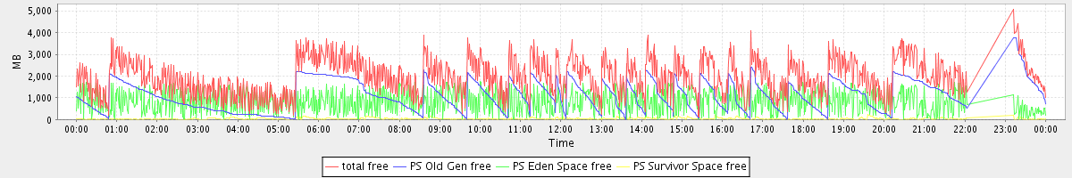 avg(total free) = 1972.30 avg(PS Old Gen free) = 1100.61 avg(PS Eden Space free) = 831.19 avg(PS Survivor Space free) = 40.50