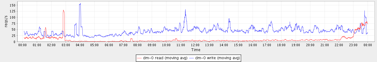 avg(dm-0 read) = 9.08 avg(dm-0 write) = 43.47