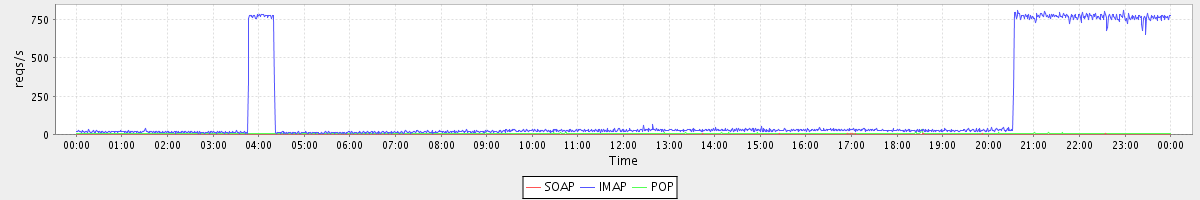 Host zm07.stanford.edu: Mailboxd: Request Rate by Client Protocol